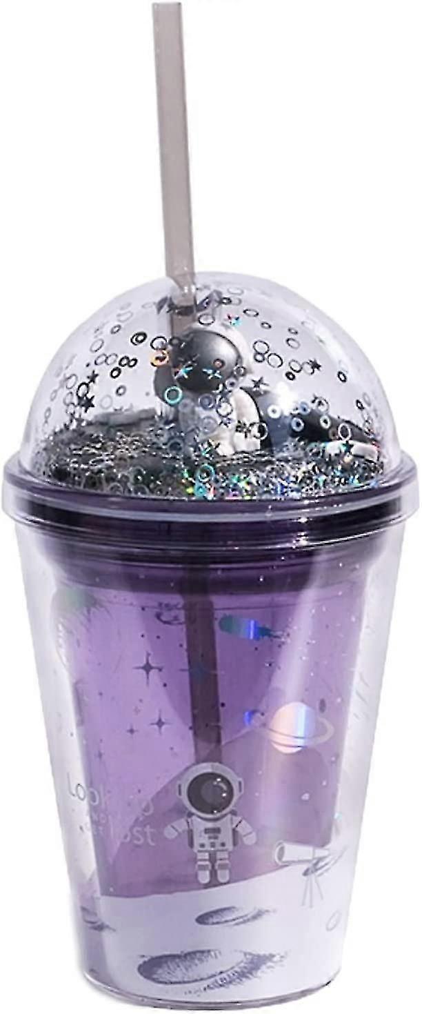 Insulated Double Wall Reusable 13oz Plastic Space Tumbler Cup Water Bottle With Lids And Straws & Bpa Free (light Purple)