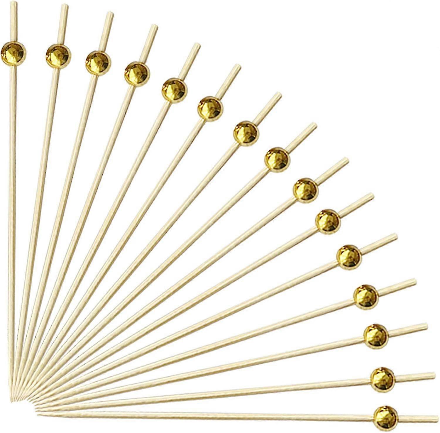 New Cocktail Picks 100pcs. Fancy Toothpicks For Appetizers. Bamboo Gold Pearl