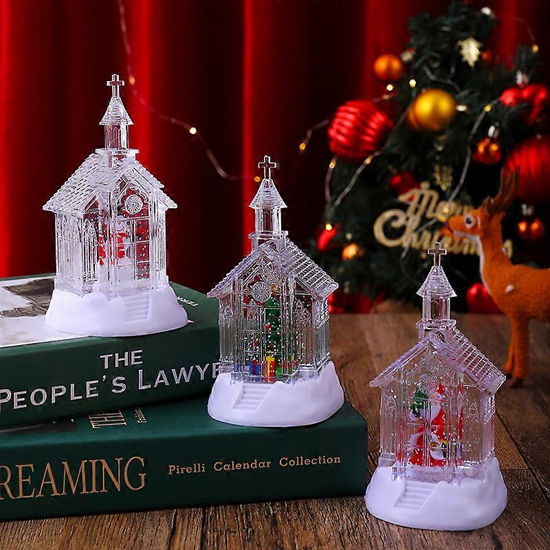 New Christmas decoration Santa Claus crystal church luminous snow lamp Christmas small gift desktop ornaments