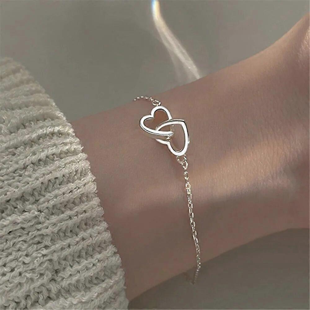 New Silver Color Double Interlocking Small Hearts Bracelet Bangle For Women Fine Fashion Jewelry Wedding Party Gift