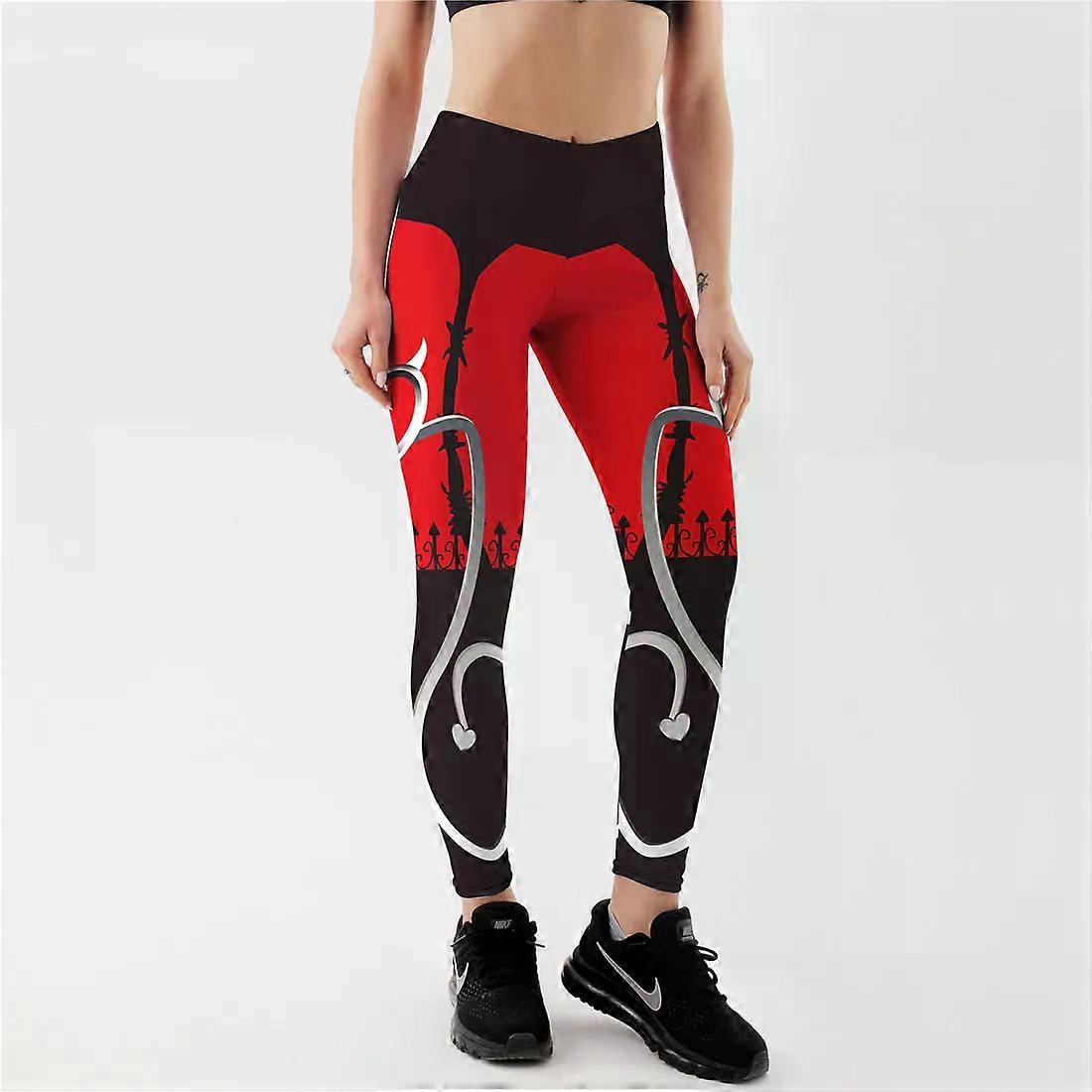 New Sexy Heart Print Leggings Women Red Black Patchwork Sporting Pants Fashion Printed Women's Fitness Leggings