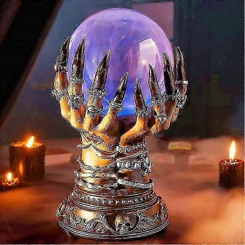 Magic Plasma Ball Touch : Fascinating to watch, this plasma ball light is even more fun to play with! Just place your fingers on the glass surface and watch as colored bolts of glowing light follow your every move. You can actually "feel" the energy as the light gently tickles your fingertips.Perfect Halloween Decor: Gaze into the future and plan for many pleasures ahead, courtesy of our Glass Crystal Ball. Nothing takes a Halloween party from ho-hum to howling-good-fun faster than a fortune-telling table.Peculiar Meaning: All the while, thunder "rolls" from the base, a set of witch's hands that seemingly hold fate in a cold, bejeweled grip. Both hands extend from a gothic-style platform to hold this mystical glass orb, Interior glow changes color for a convincing show of otherworld activity.The Base Produces: High frequency electromagnetic waves that cause the gases to turn into plasma,If you touch the ball, the lightning bolts will combine into a strong beam and follow the movement of your finger, a dazzling blue strand of electricity from its center.Perfect Gift: Deluxe magical celestial flashing crystal ball light most safe, brightest, harmless, and lasts for long time use. you can make the perfect gift for children of all ages. Show your children the mysteries of science and have a wonderful magic show!Magic Plasma Ball TouchFascinating to watch, this plasma ball light is even more fun to play with! Just place your fingers on the glass surface and watch as colored bolts of glowing light follow your every move. You can actually "feel" the energy as the light gently tickles your fingertips.Perfect Halloween DecorGaze into the future and plan for many pleasures ahead, courtesy of our Glass Crystal Ball. Nothing takes a Halloween party from ho-hum to howling-good-fun faster than a fortune-telling table.Peculiar MeaningAll the while, thunder "rolls" from the base, a set of witch's hands that seemingly hold fate in a cold, bejeweled grip. Both hands extend from a gothic-style platform to hold this mystical glass orb, Interior glow changes color for a convincing show of otherworld activity.The Base ProducesHigh frequency electromagnetic waves that cause the gases to turn into plasma,If you touch the ball, the lightning bolts will combine into a strong beam and follow the movement of your finger, a dazzling blue strand of electricity from its center.Perfect GiftDeluxe magical celestial flashing crystal ball light most safe, brightest, harmless, and lasts for long time use. you can make the perfect gift for children of all ages. Show your children the mysteries of science and have a wonderful magic show!SpecificationProducts Weight: 485g/1.06lbProducts Size: 221512cm/8.65.94.7 inchPackage includes: 1  Halloween Celestial Crystal Ball