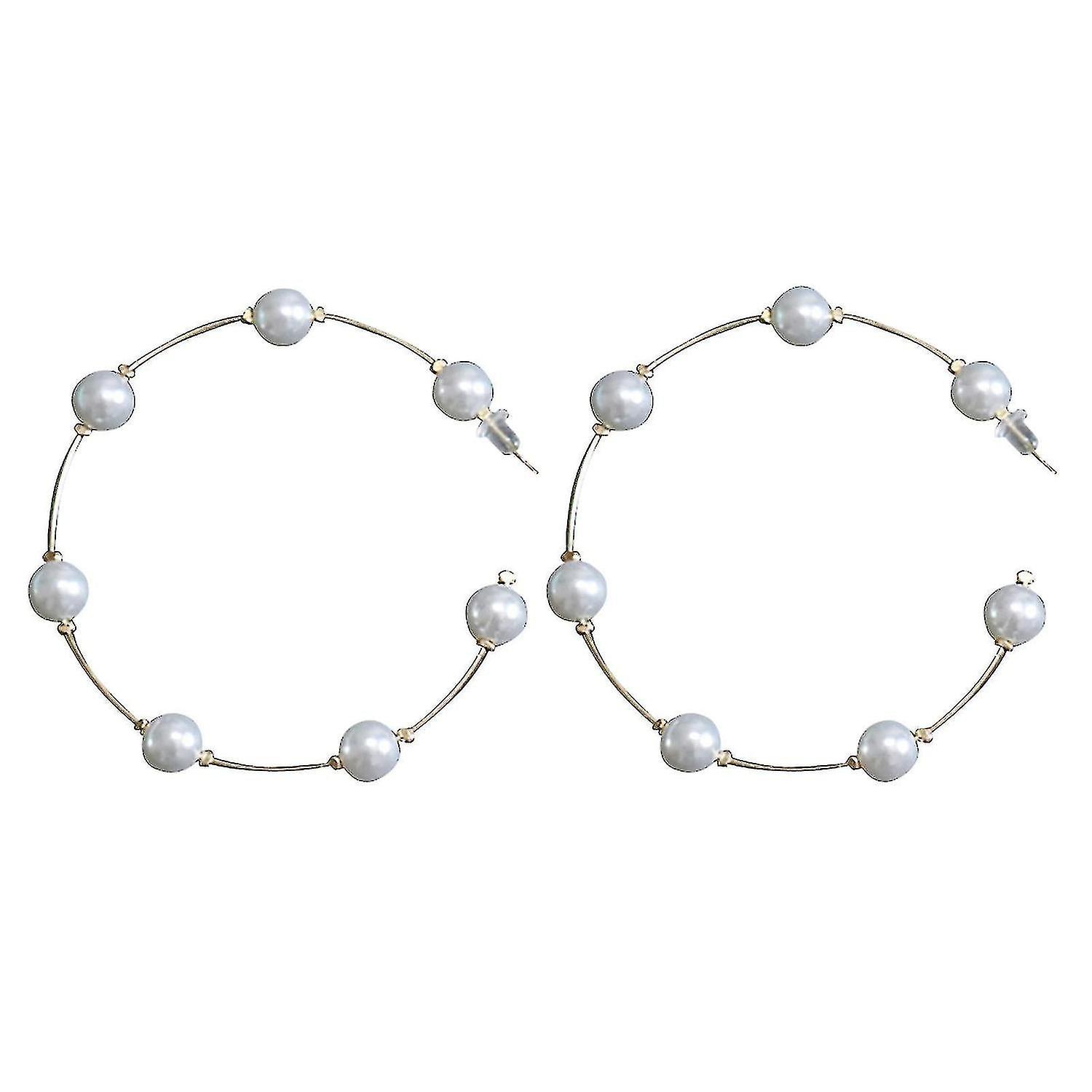 New Big Circle Metal Earrings Creative Retro Pearl Earrings