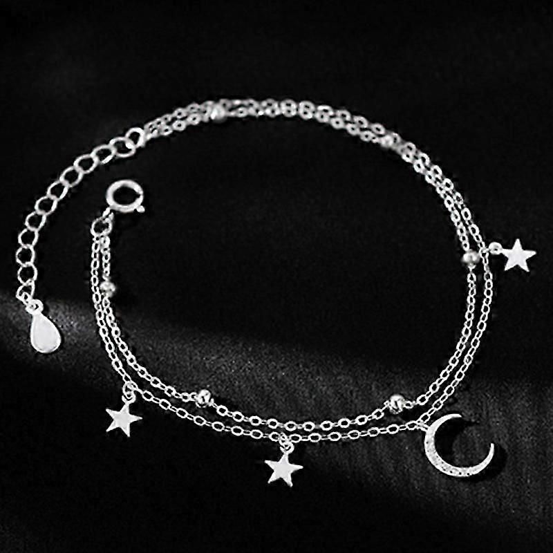 New Fashion Sterling Silver Star Moon Bracelet Geometric Double Layer Bracelet Party Gift Popular Women Jewelry