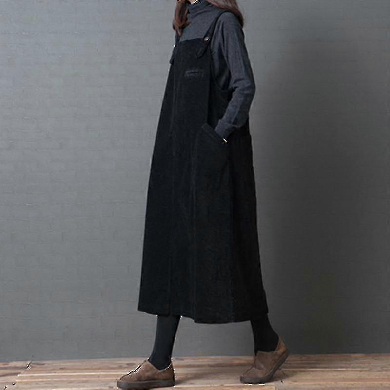 New Fashion Women Corduroy Vintage Dress Pocket Casual Strap Autumn Winter Loose Vest Overall Dress
