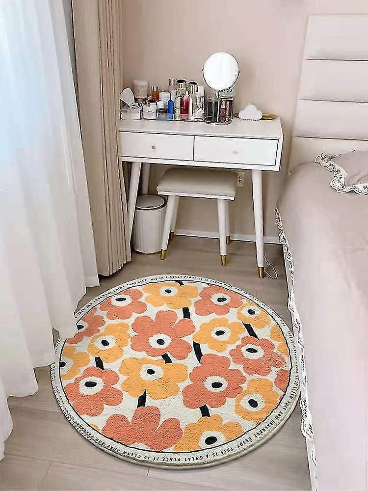 New ModelsFluffy Bath Mat, Vintage Orange Floral White Background Bathroom Rug, Round Soft