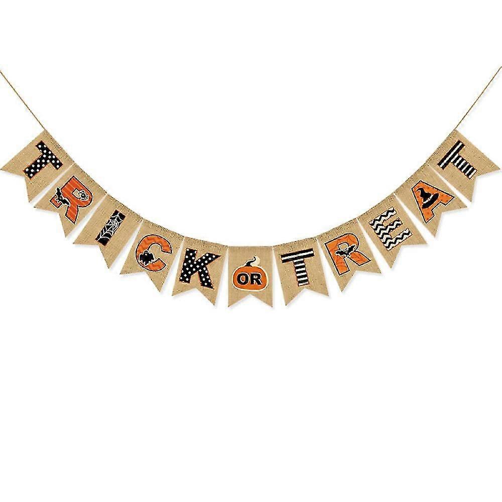 New ModelsTrick Or Treat Burlap Banner, Multicolor Halloween Burlap Banner Decorations