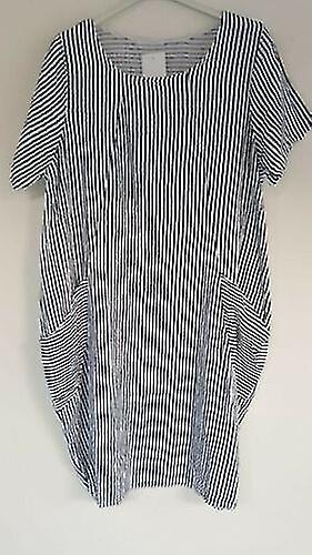 NEW ITALIAN LAGENLOOK SUMMER DRESS QUIRKY STRIPE PATTERN DRESS ROUND NECK LIGHT WEIGHT 100% COTTON FEATURES 2 POCKETS ON FRONT HALF SLEEVES ONE SIZE 14-20 DRESS LENGHT FROM SHOULDER TO HEM 40" BUST APPROX 42" up to 46" CAN WEAR AN UNDERSKIRT DUE TO LIGHTWEIGHT MATERIAL LOVELY FOR THE SUMMER IDEAL FOR WEARING AROUND THE HOUSE FOR WORK VERY COMFORTABLE NEW WITH TAGS MADE IN ITALY DISPATCHED WITH ROYAL MAIL 2nd CLASS Please Note: Actual Product Colours May differ slightly from pictures in this listing. Due to lighting during photography and computer screens. If you are unsure please contact us through Ebay.