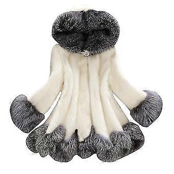 新しい冬の暖かいフェイクファーレディースコートミディアムロングミンクフード付きフェイクフォックスファーコート