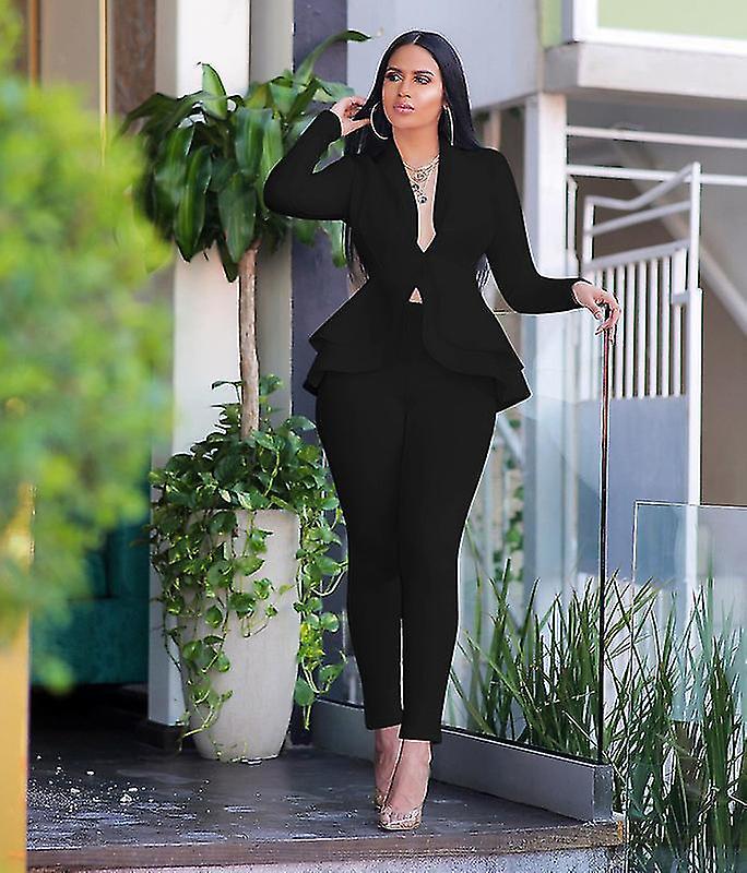 New Women Set Full Sleeve Ruffles Blazers Pants Suit Two Piece Set Office Lady Business Wear