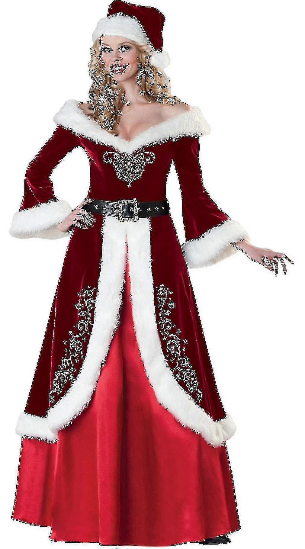 New Women Retro Style Christmas Costumes Mrs Santa Claus Costume Ladies Christmas Cosplay Party Fancy Long