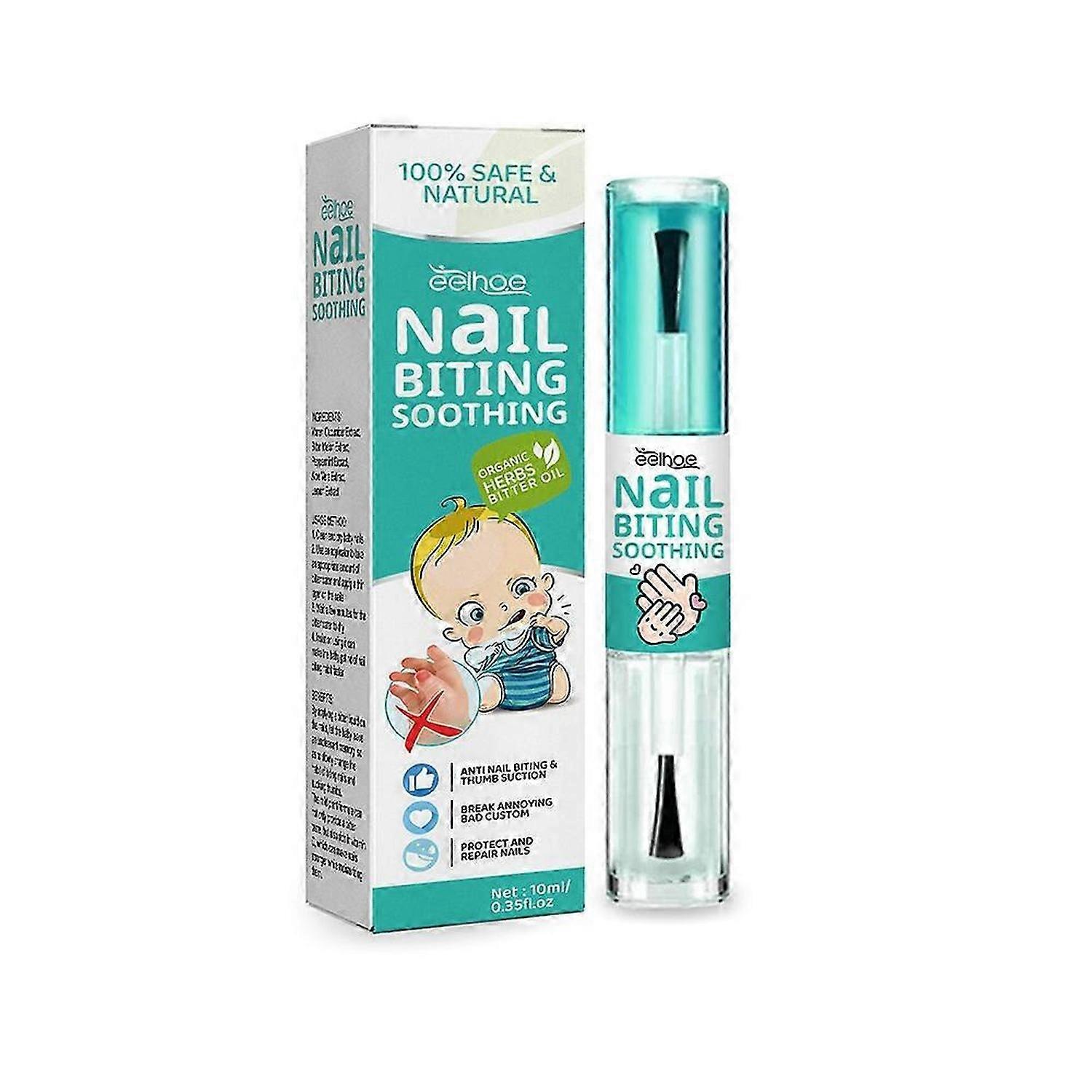 Name: Anti-bite Nail Bitter Water<br> Key Words: Anti-bite Nail Lotion; Anti-bite Nail Bitter Nail Lotion; Protect Bitter Nail Lotion<br> Capacity: 10ml<br> Gross Weight: 40G<br> Ingredients: Water, Cucumber Extract, Bitter Melon Extract, Peppermint Extract, Aloe Vera Extract, Lemon Extract<br> Package Size: 10.7*2.7*2.7cm<br> Specifications:<br> 1. Applying It On The Nails Can Make The Baby Form A Taste Memory. Every Time The Fingers Are Bitter, It Helps To Get Rid Of Eating Hands And Its Negative Effects. 2. Moisturize Nails And Promote Healthy Growth Of Nails. If You Use It For A Period Of Time, The Bitten Nail Will Slowly Recover.<br> 3. Multi-purpose, Suitable For Places Where Babies Like To Bite, Such As Sleeves, Pen Tips, Etc. It Can Also Help Break The Habit Of Biting.<br> 4. Promote Healthy Nail Growth For Babies And Toddlers With This Easy-to-use Nail Solution.<br> 5. Protect Babys Nails From Biting And Promote Healthy Growth With This Best-selling Nail Care Product.<br> Package Included:<br> 1 * Nail Bitter Water
