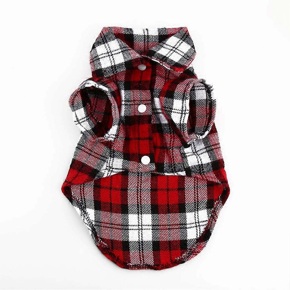 New Small Pet Dog Puppy Plaid T Shirt Lapel Coat Cat Jacket Clothes Costume Red M
