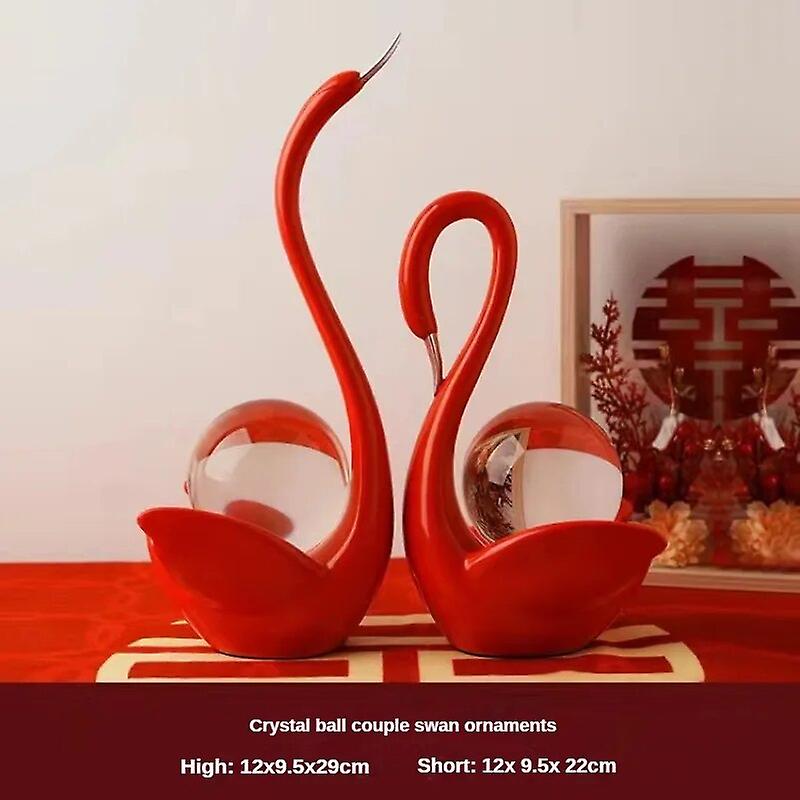 New Crystal Ball Couple Swan Ornaments, Modern Light Luxury Home Living Room Tv Cabinet Decoration, Including Crystal Ball