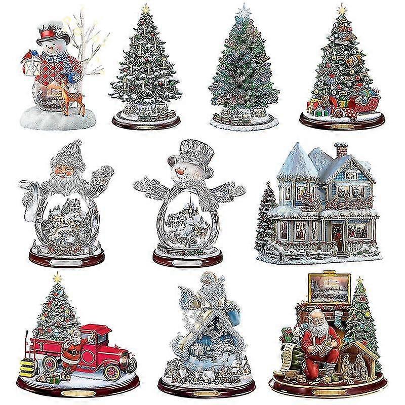 New Cartoon Christmas Acrylic Pendant Decoration 10pcs/set Cute Snowman Santa Tree Hangable Home