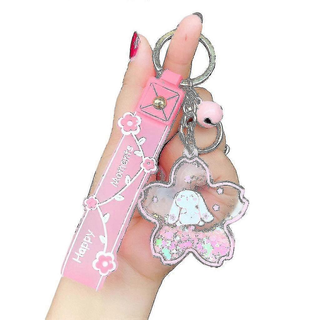 New Cartoon Bunny Gift Pendant Cherry Blossom Oil Flowing Fashion Quicksand Car