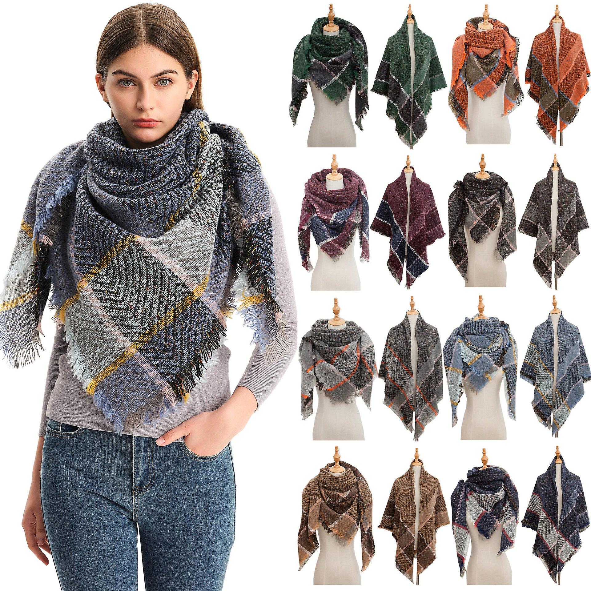 New Autumn And Winter Shawl Circle Yarn Bristle Thickened Plaid Square Scarf Cloak