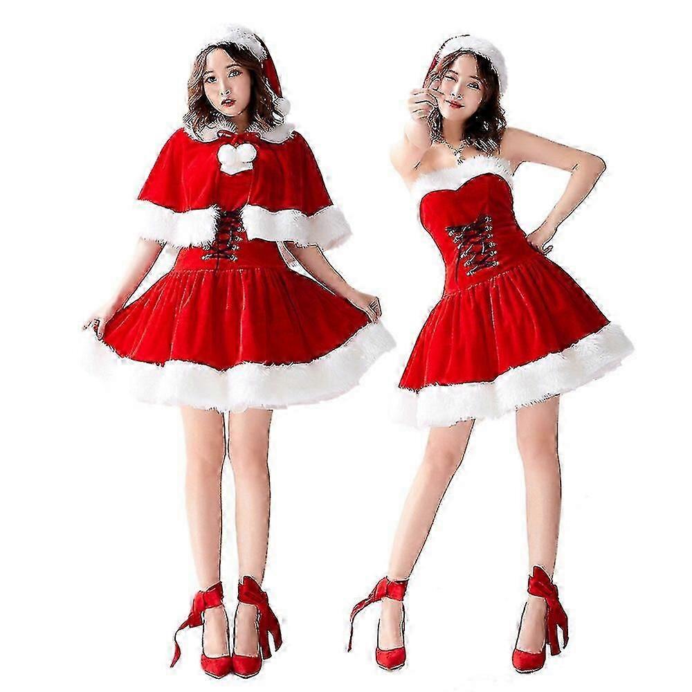 New High Quality Miss Sweet Sexy Christmas Dress Santa Claus Costume Cosplay Party Tube Top Christmas Girl Fluffy Skirt Suit