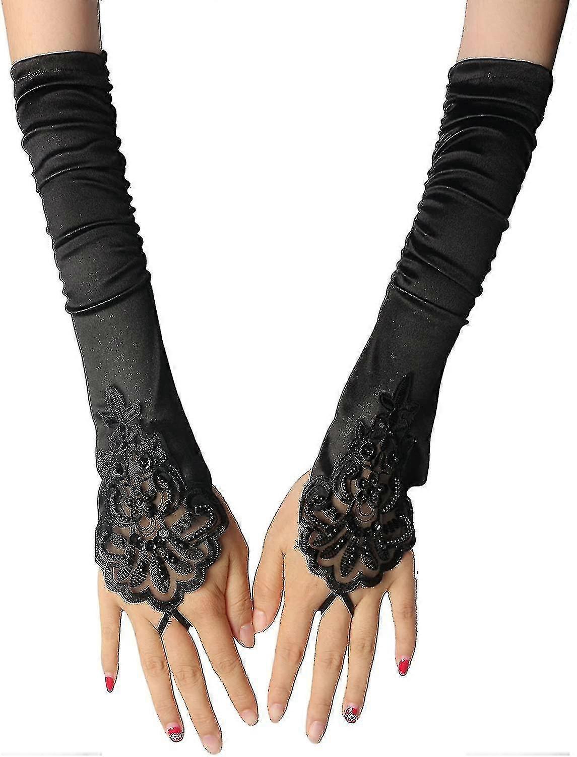 New Black Gloves Long Gloves 1920s Accessories Flapper Costume Fingerless Gloves For Women Roaring 20's Accessories Classic Satin Elbow Length Gloves,