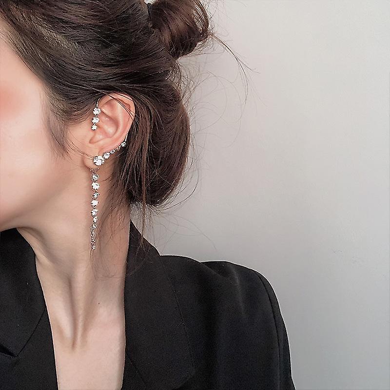 New 1PC Korean Rhinestone Earrings Shiny Drill Arc Ear Hanging Clip Earrings for Women Minimalist E