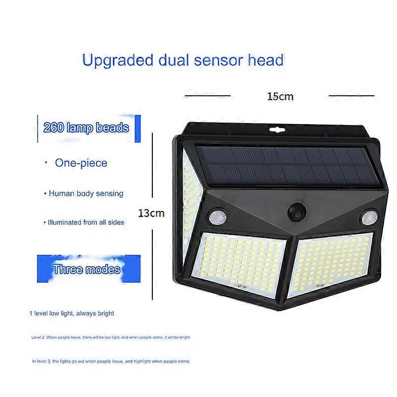 New 260 LED Dual Induction Solar Wall Light Four Sided Lighting Human Body Sensor Light Outdoor Garden Light -GSL