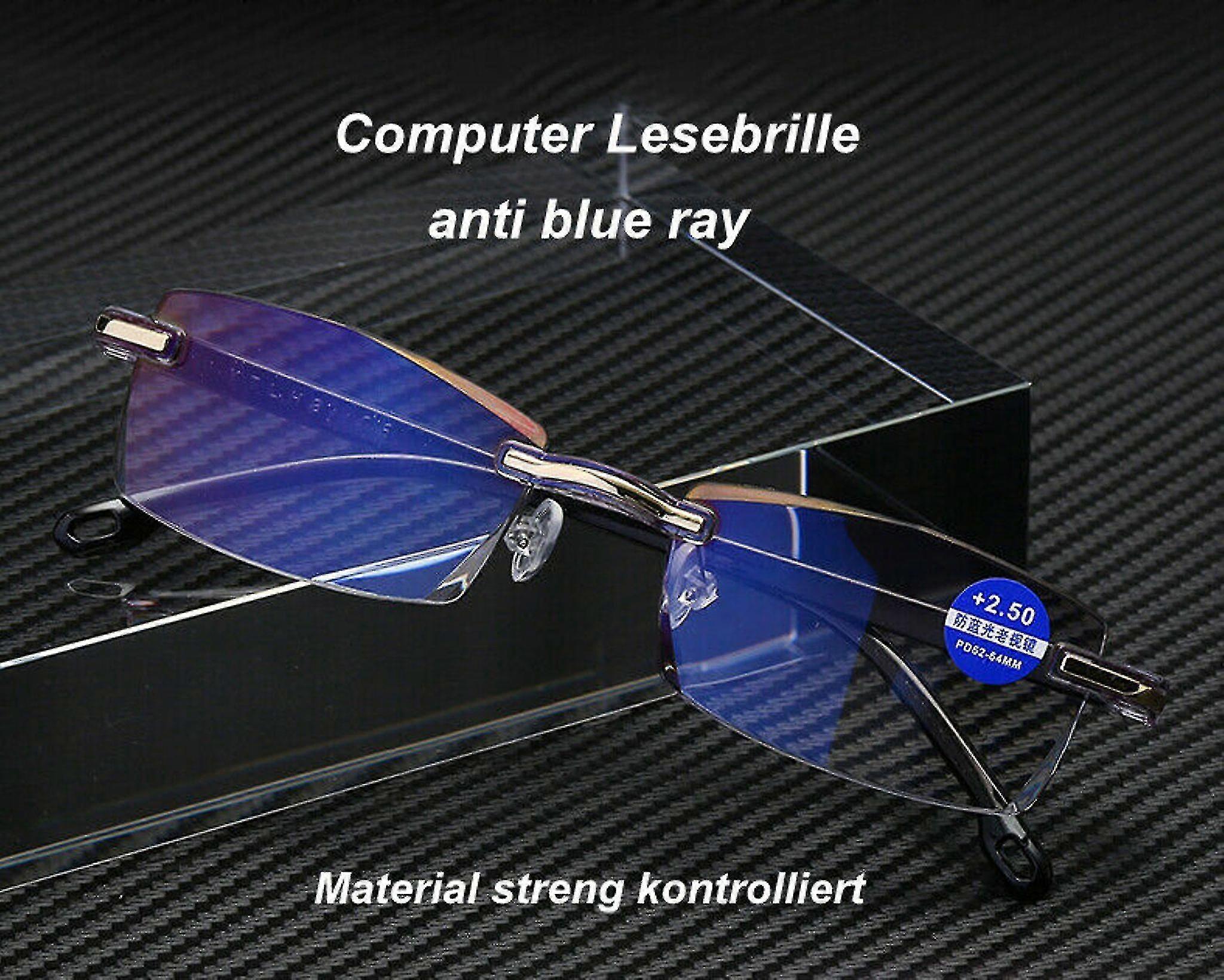 New 2pcs Anti Blue Light Glasses Uni Reading Glasses Rimless For Tv Computer Blue Light Filter +2.5 Dioptres