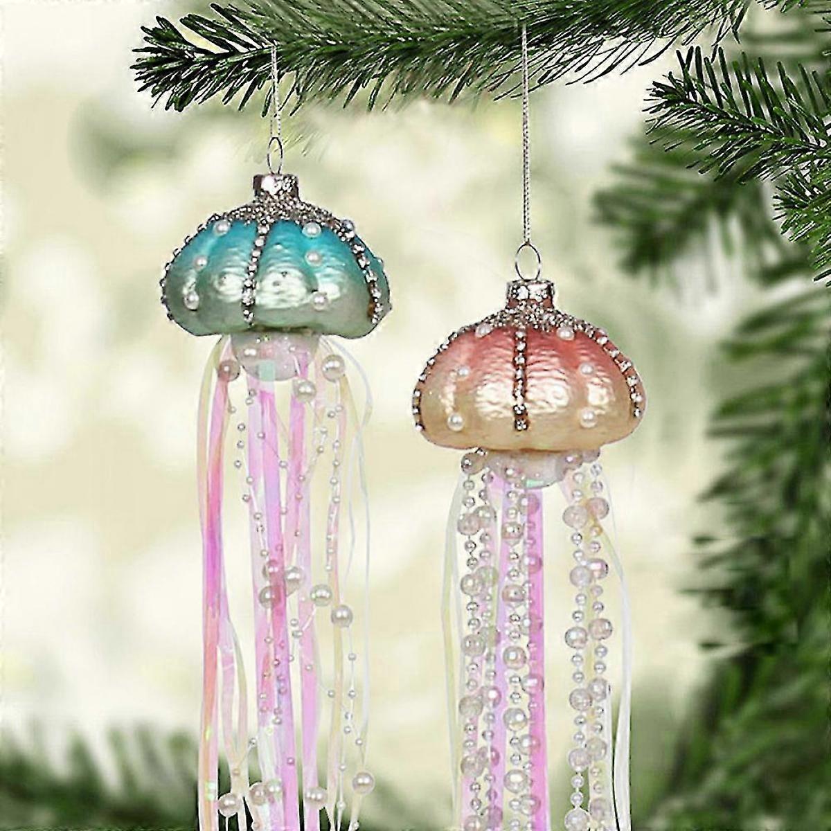 New 4Pcs/Set Glass Jellyfish Christmas Ornaments Gems & Pearls Decor Hanging Christmas Tree Ornaments New Year 2022 Gifts