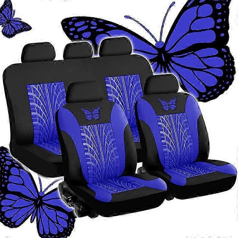 New 5-Seat Car Seat Covers Butterfly Pattern Embroidery Universal Breathable Fabric Airbag Safe SUV Seat Protector Accessories
