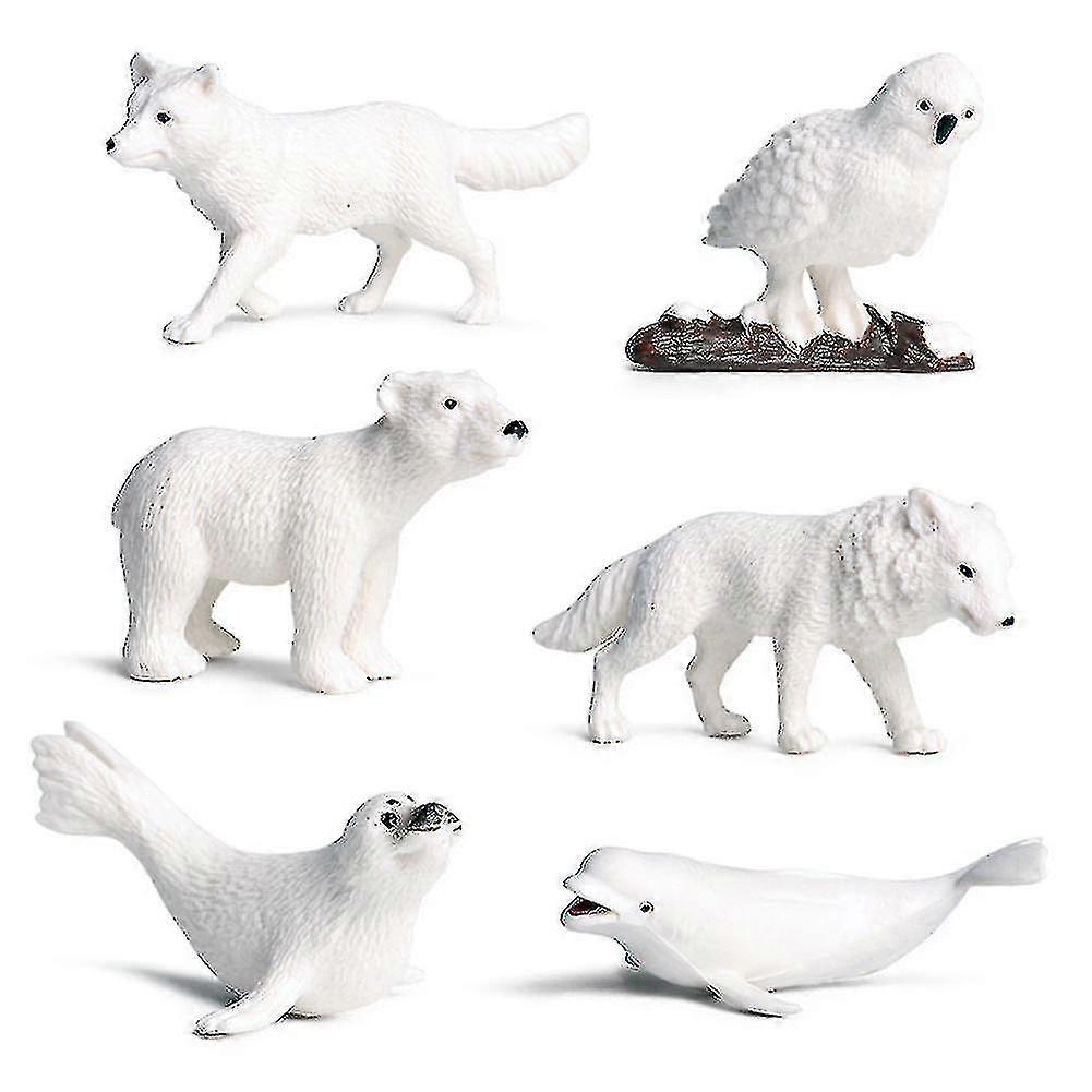 New 6pcs/set Simulation Penguins Polar Bear Snowy Owl Dolphin Wolf Model Figurine Toy_a_hf