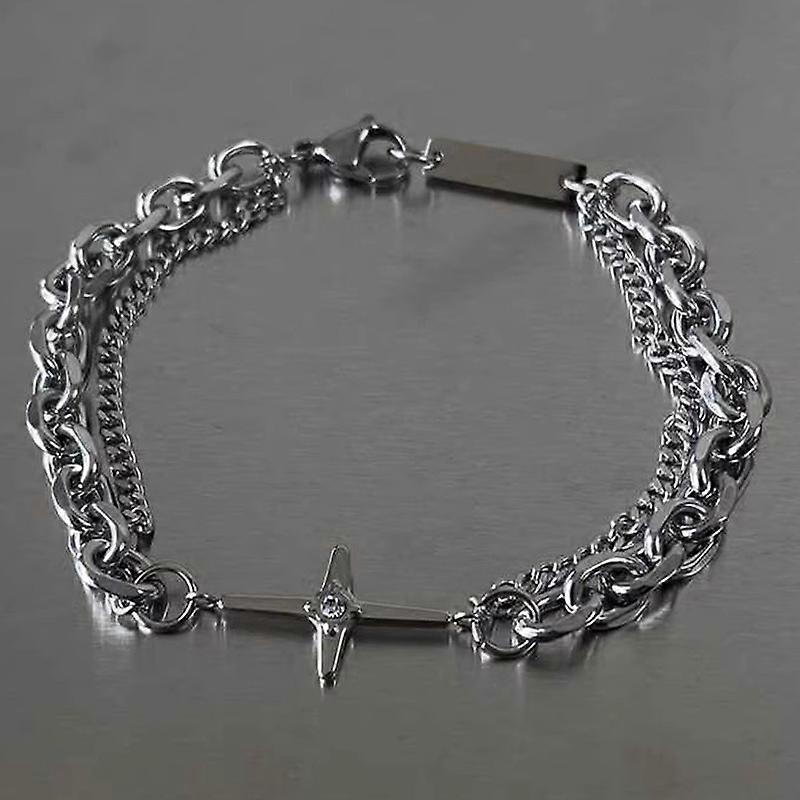 New Y2K Cross Stars Metal Bracelet Vintage Star Bracelet Punk Multilayer Charm Chain Bracelets for Women Men Hip Hop Bracelet