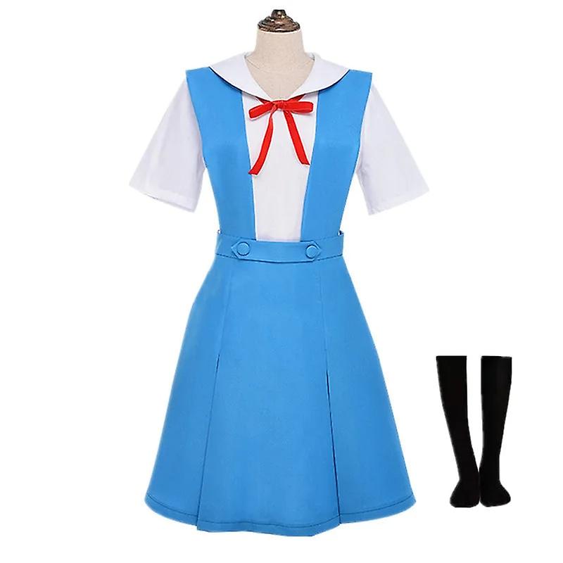 Our Anime New Evangelion Dress Ladies Sexy Cosplay Costume School Anime Uniform with Wig and Black Socks Holiday Performance Clothes is perfect for cosplay events, Halloween parties, and other special occasions. It's also a great gift for anime fans who want to show their love for the series.