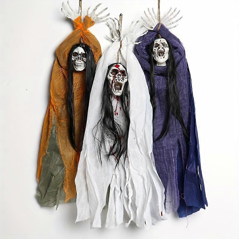 New ModelsSpooky Halloween Ghosts Outdoor Decor - Three-Piece Set, Plastic, Hanging Style, No Feathers, Perfect for Your Haunted Lawn