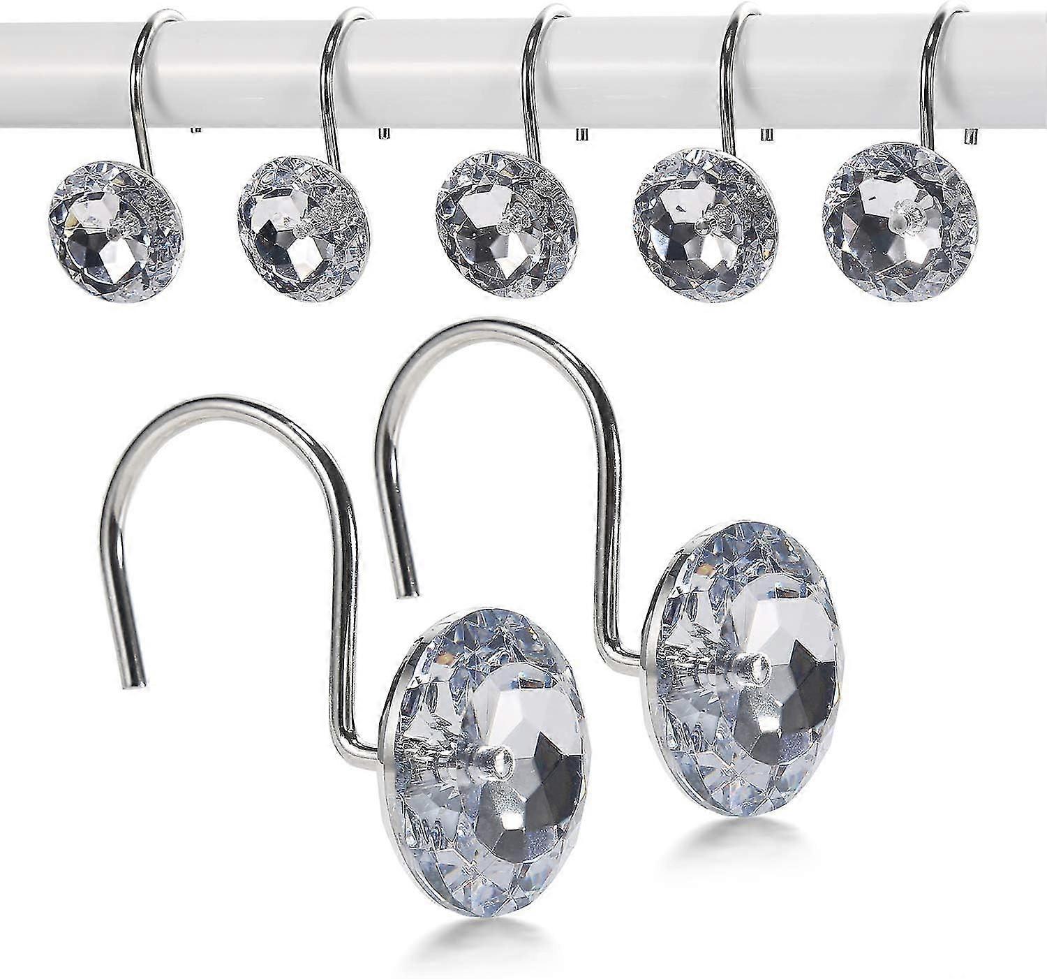 New Models12 Pcs Shower Curtain Hooks, Acrylic Crystal Shower Curtain Rings, Metal Rust-resistant Sliding Shower Hooks