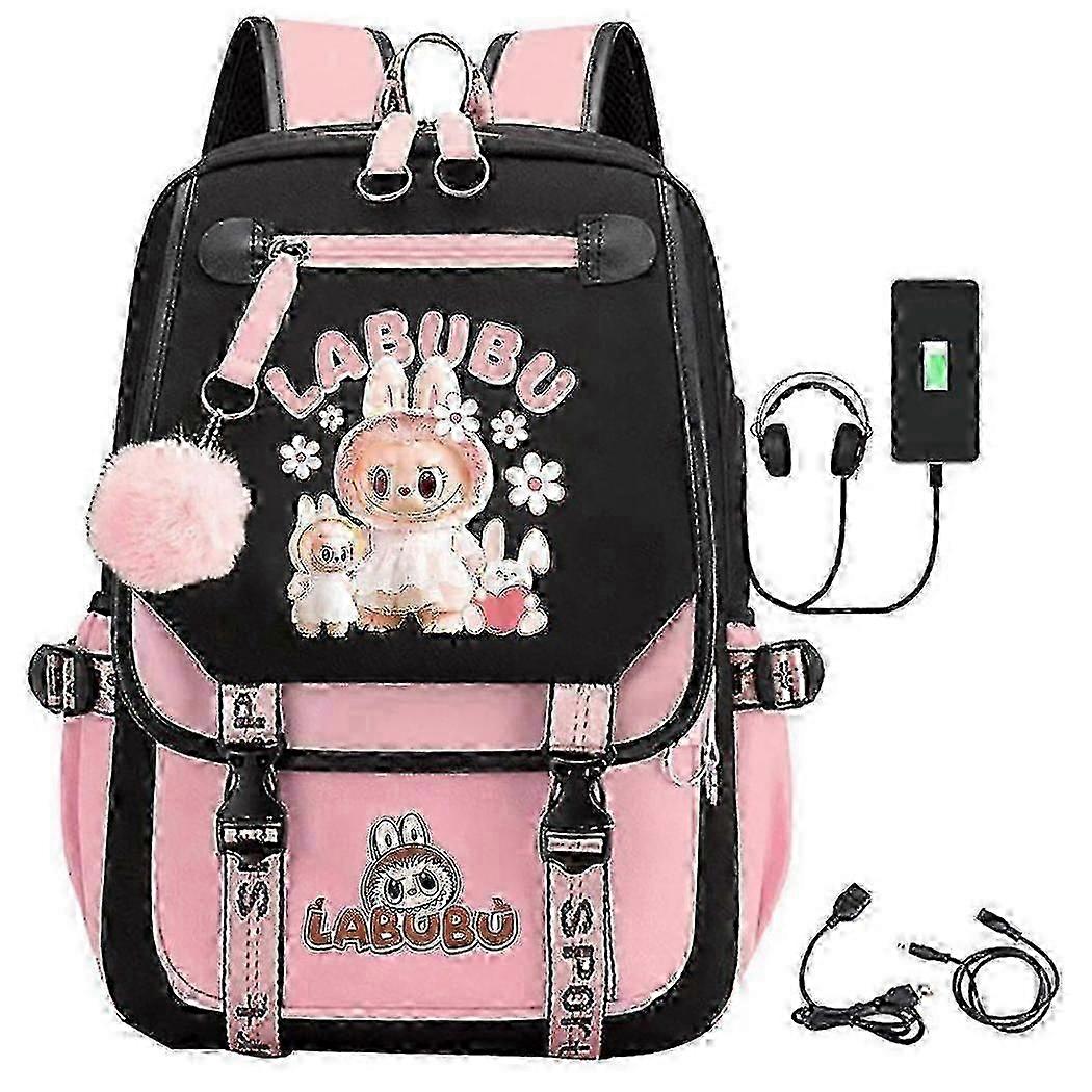 New Cartoon Labubu Usb Charging Backpack Students Schoolbag For Men Women Kids