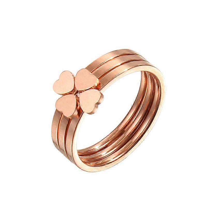 (New arrival) 3 In 1 Titanium Steel Peach Heart Combination Four-Leaf Clover Couple Ring, Size: US Size 8