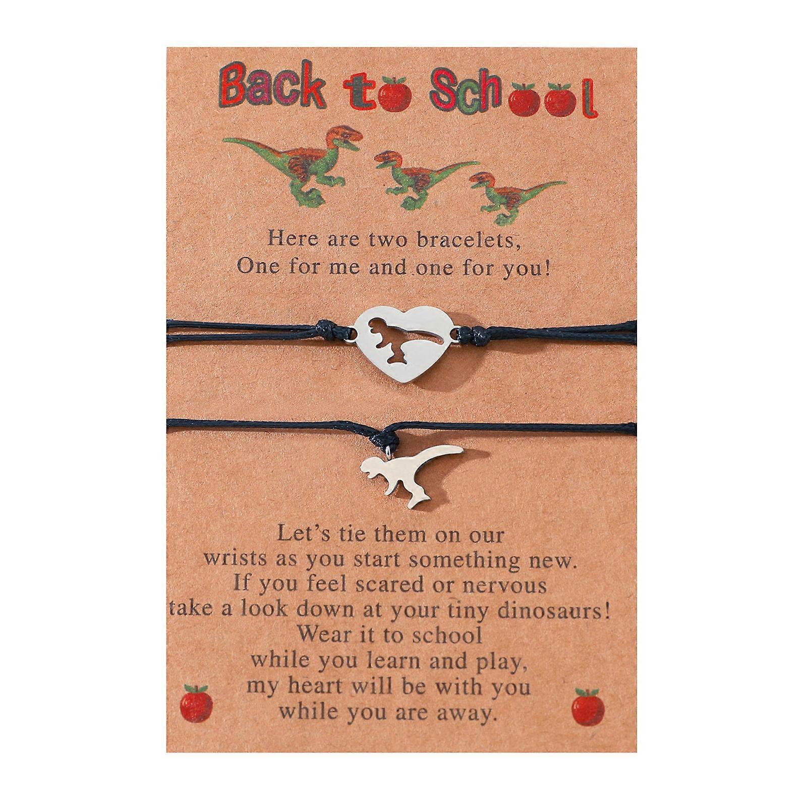 Great Matching Back to School Bracelets Set: The back to school bracelet set comes in 1 PC hollow heart bracelet, 1 PC small dinosaur bracelet which fit perfectly together, creating a beautiful heart shape, and the dinosaur shaped design adds an element of fun and childishness to this sentimental gift, best first day of kindergarten bracelet for children to show your love