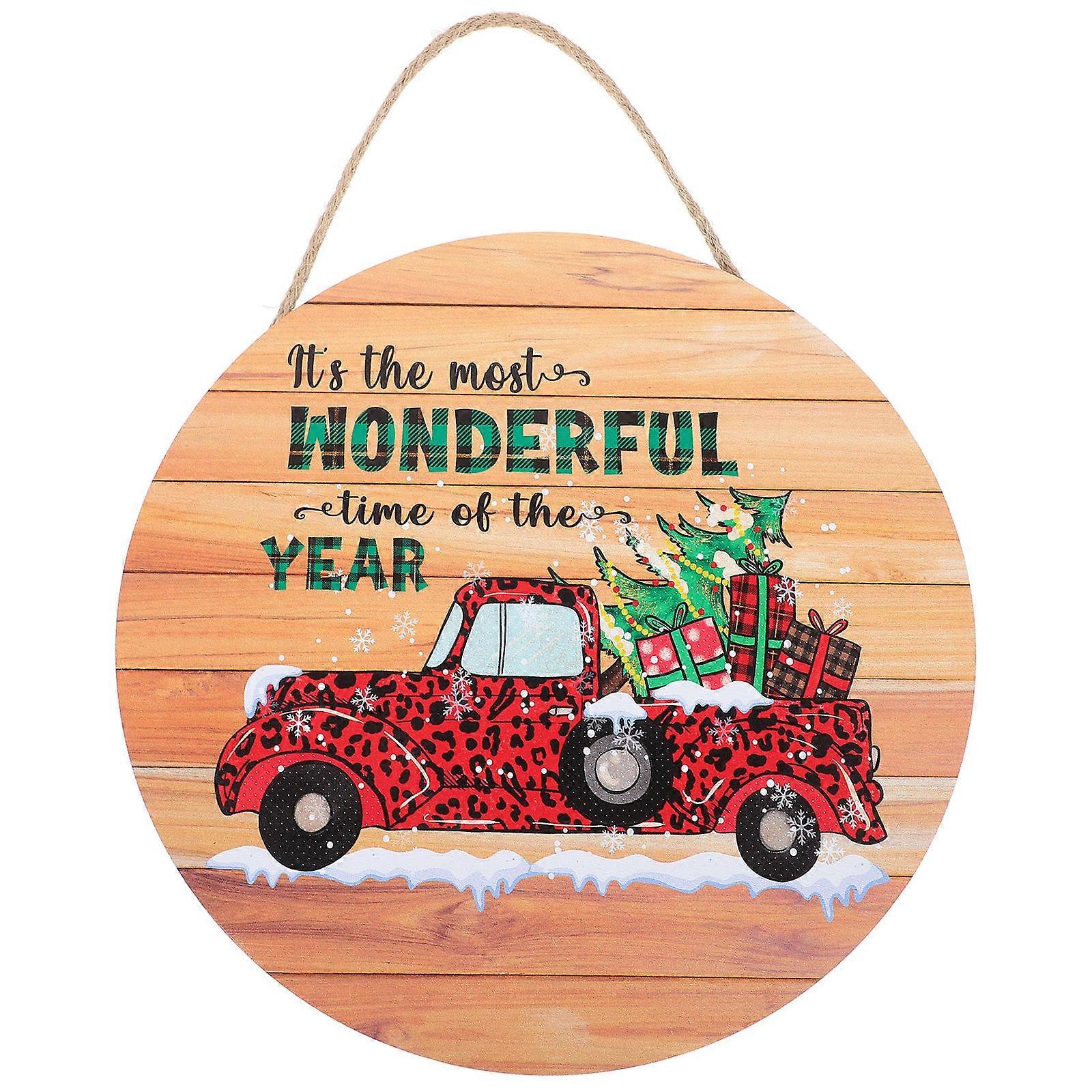 New Year Door Sign Wood Board Hanging Door Sign Home Decoration Assorted Color 30.20X30.20X0.50cm 1Pcs