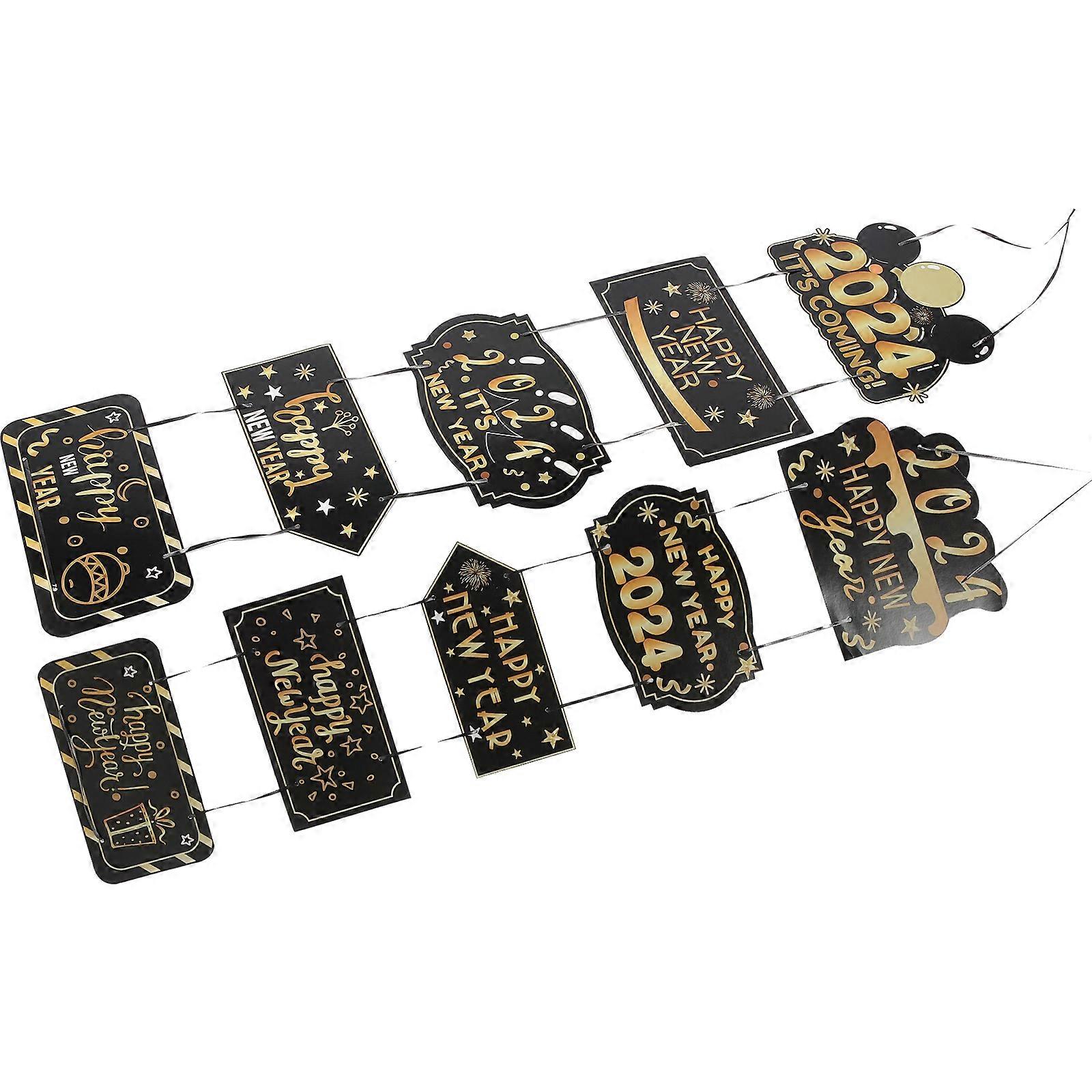 New Year Door Banner Decorative Signs for Home Porch Couplet Made of Synthetic Material Black Color