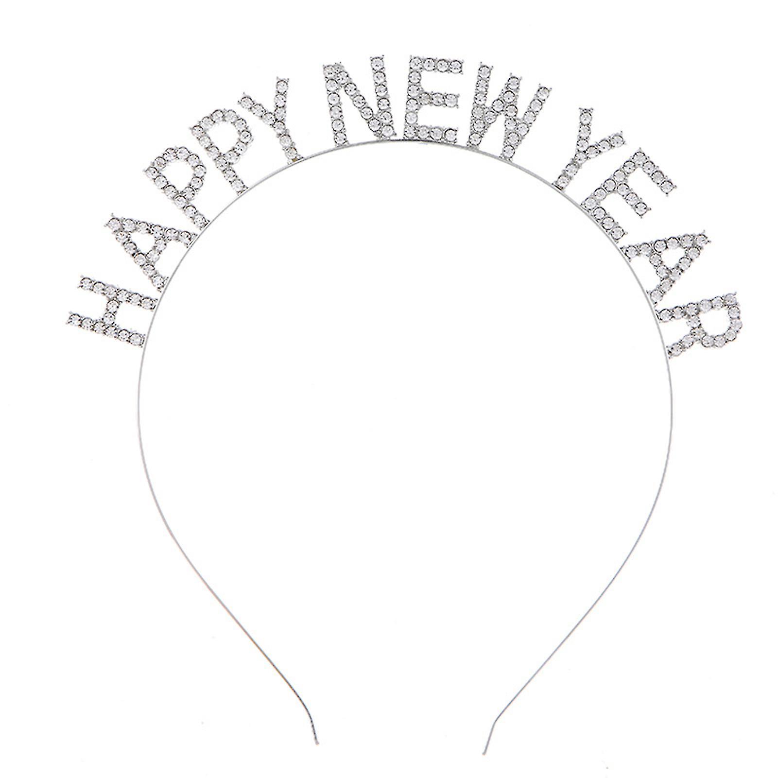 New Year Headband Shiny Rhinestone Letter Decorative Anti-slip Elastic Hair Decoration Alloy Party Prop Christmas Hair Band For Prom