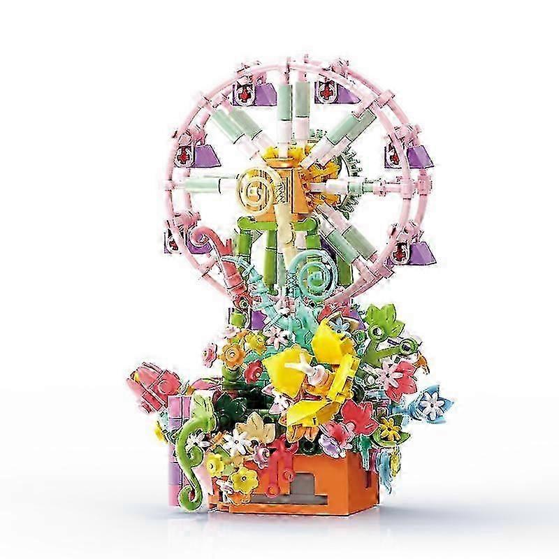 Simulated Dried Flowers Castle Rotating Music Box Desktop Decoration Building Blocks and Bricks for Celebrating the New Year