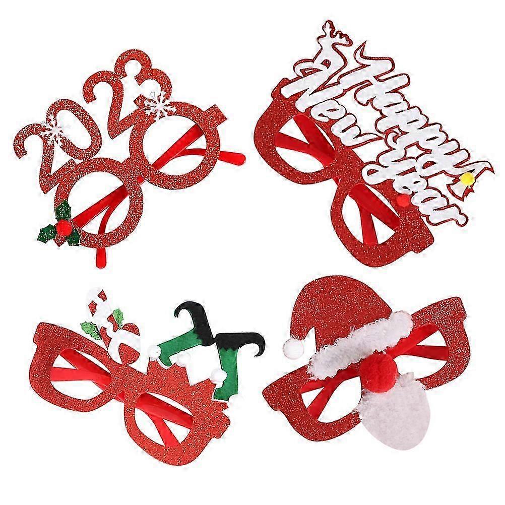 New Year Accessories Party Glasses Frame Festive Atmosphere Felt Material Various Christmas Elements 4Pcs