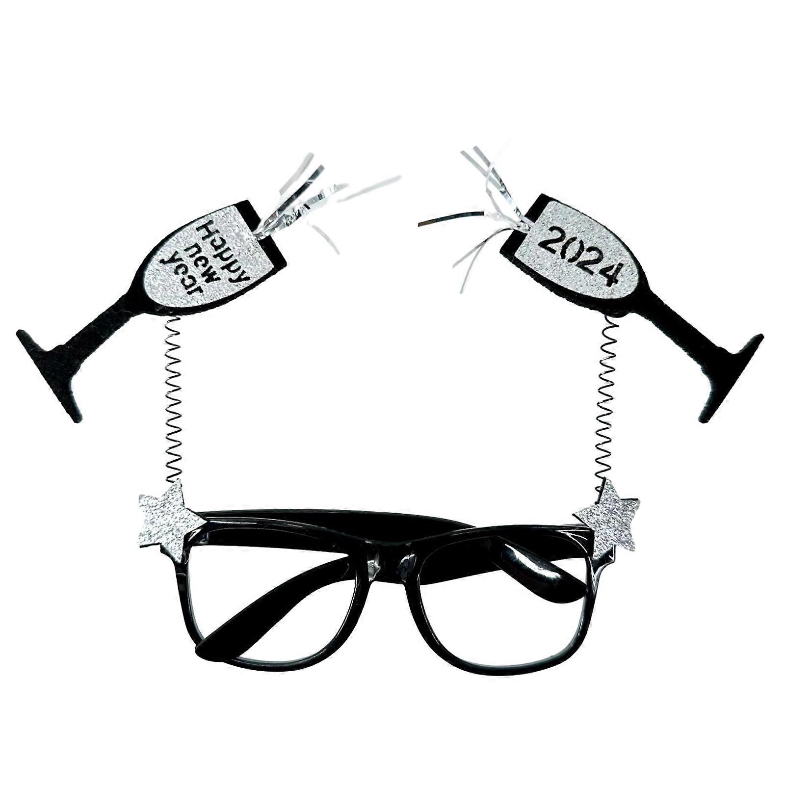 New Year Festival Eyeglasses Frame 2024 New Year Costume Party Favors Funny New Year Party Novelty New Year Eyeglasses Silver