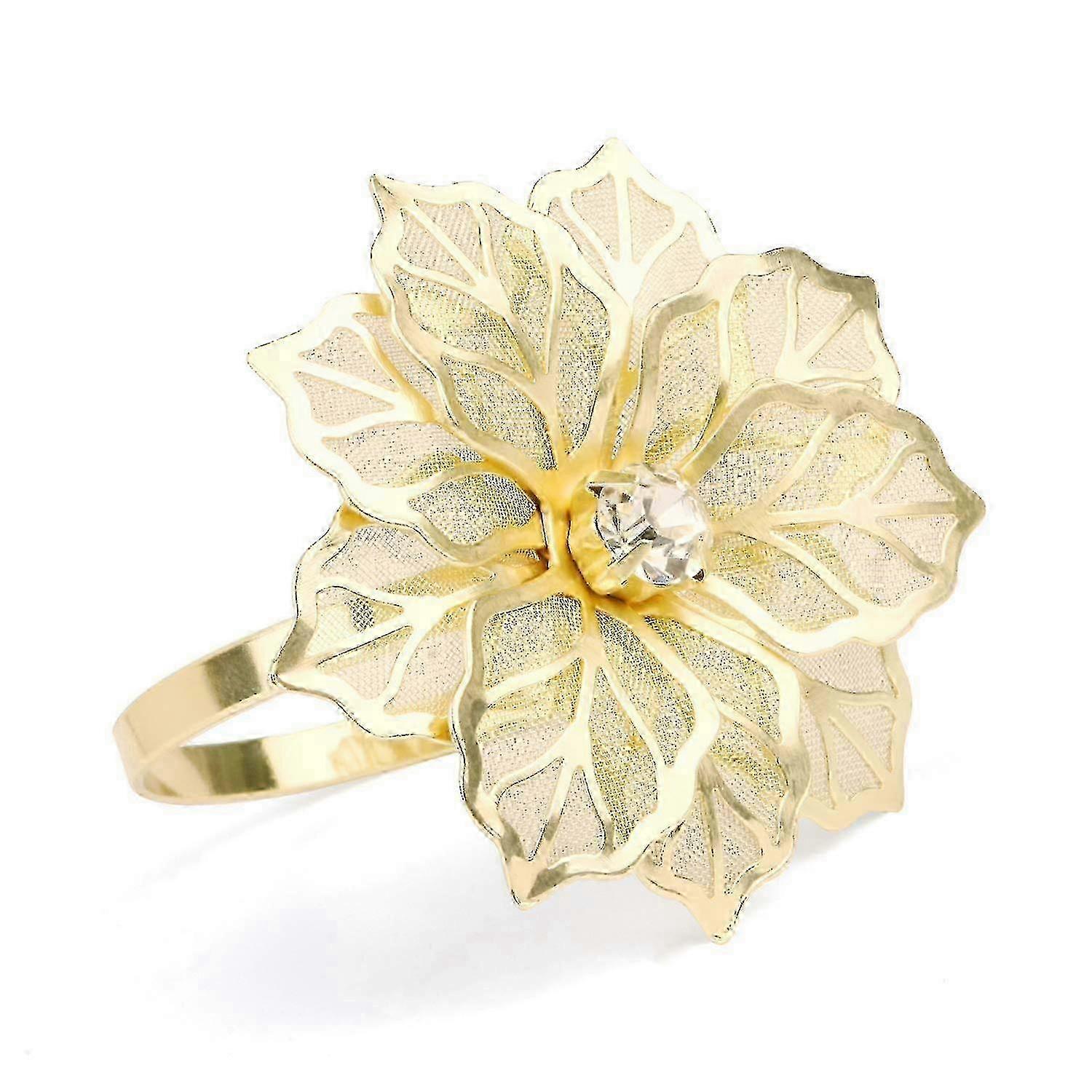 New & Improved: 12-Piece Gold Plated Hollow Out Flower Design Alloy Napkin Rings