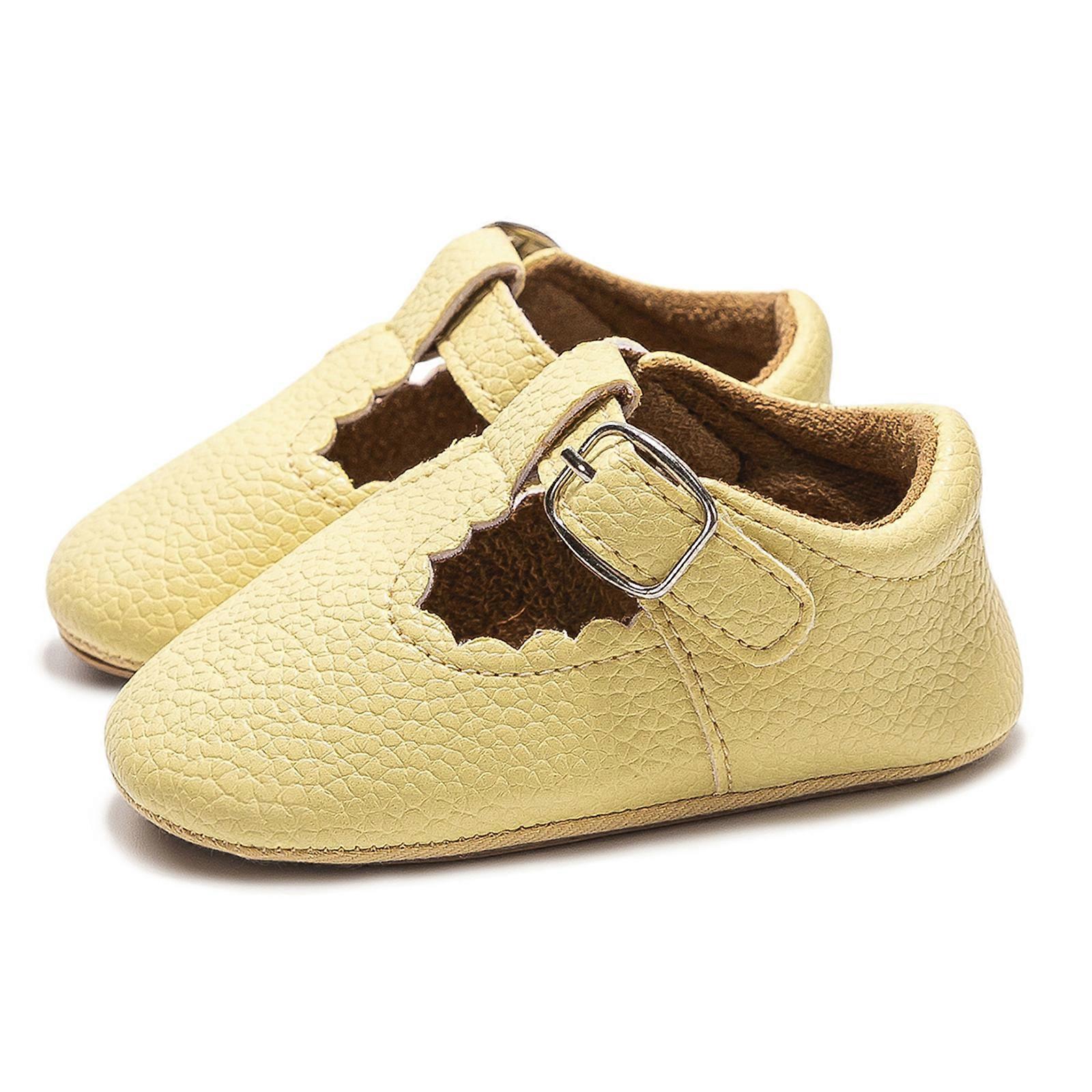 Newborn Baby Shoes Striped Texture PU Leather Cute Girl Shoes Toddler Rubber Sole Anti-slip First Walkers for Infant Yellow