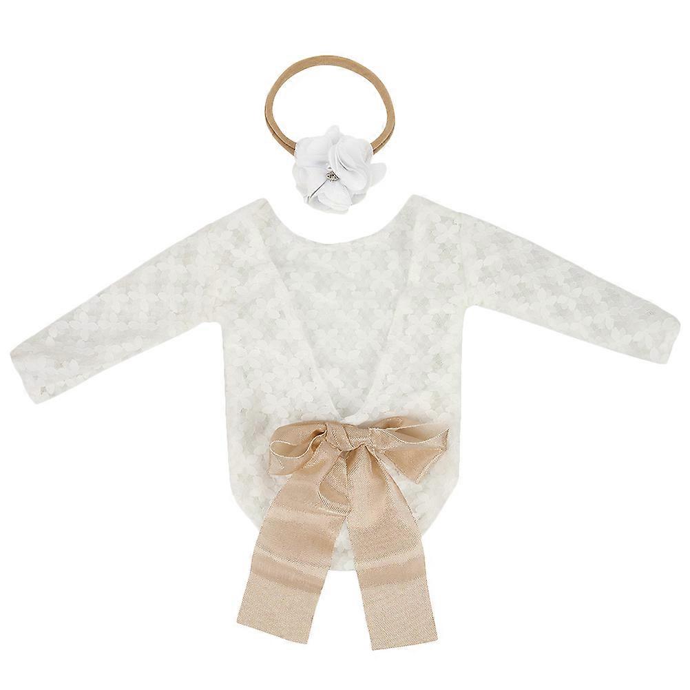 Newborn Photoshoot Girl Rompers Headband SkinFriendly Comfortable Bow Design 1Set