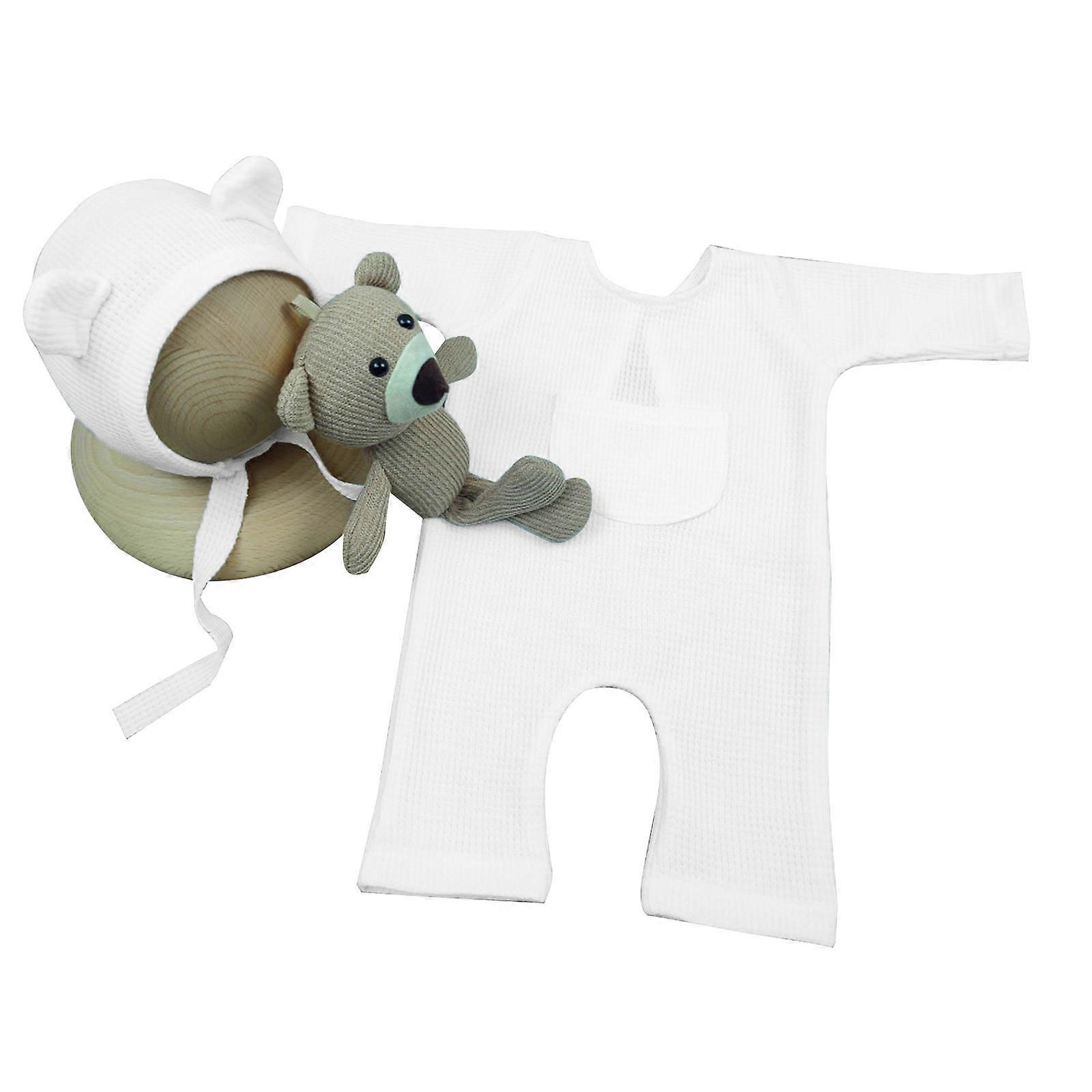 Newborn Photography Outfits Baby Photoshoot Props Boy Girl Hat Clothes Doll set Infant First Picture Photo Present White