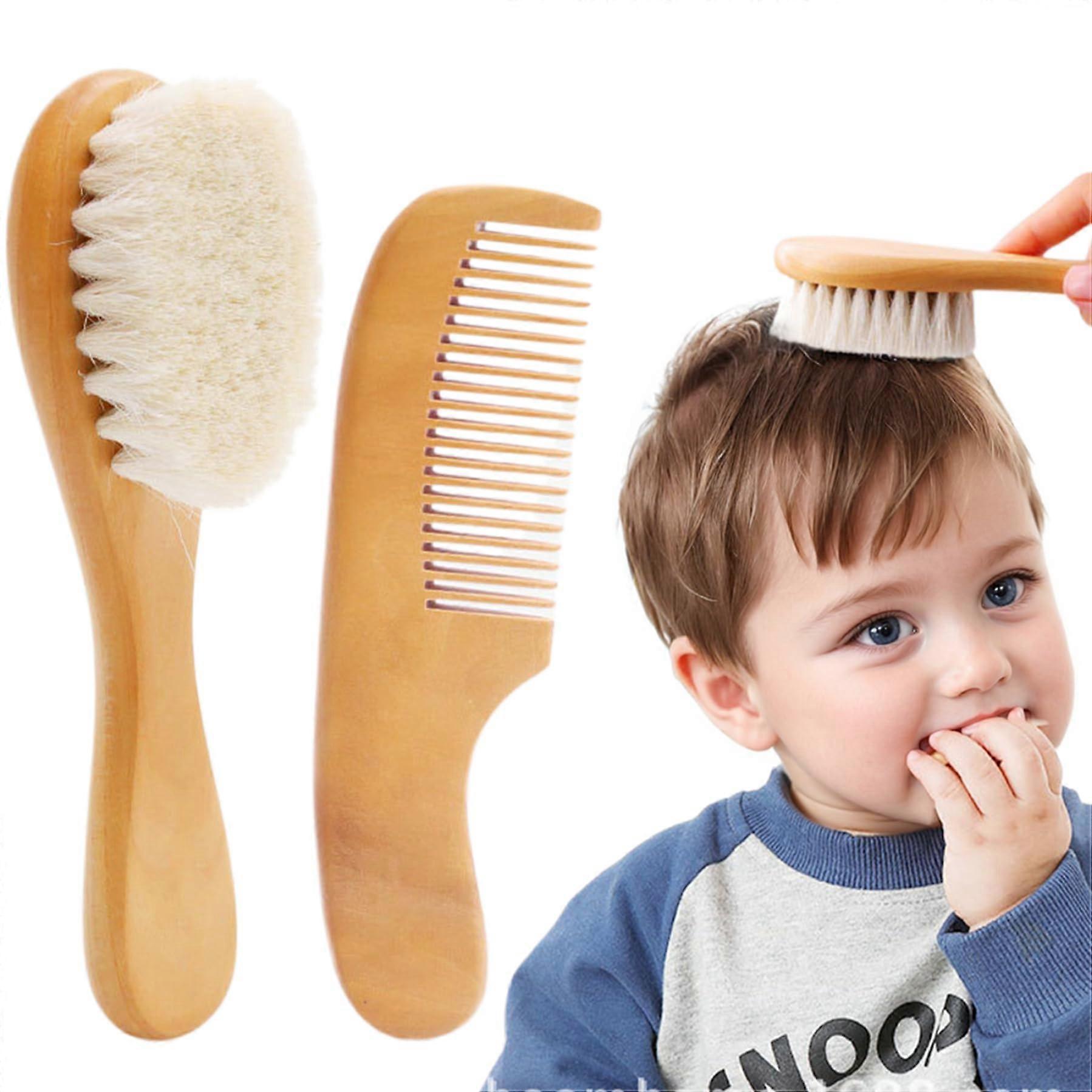 Baby Hair Brush And Comb Set For Newborns Wooden Soft And Gentle With Toddler Cap Brush
