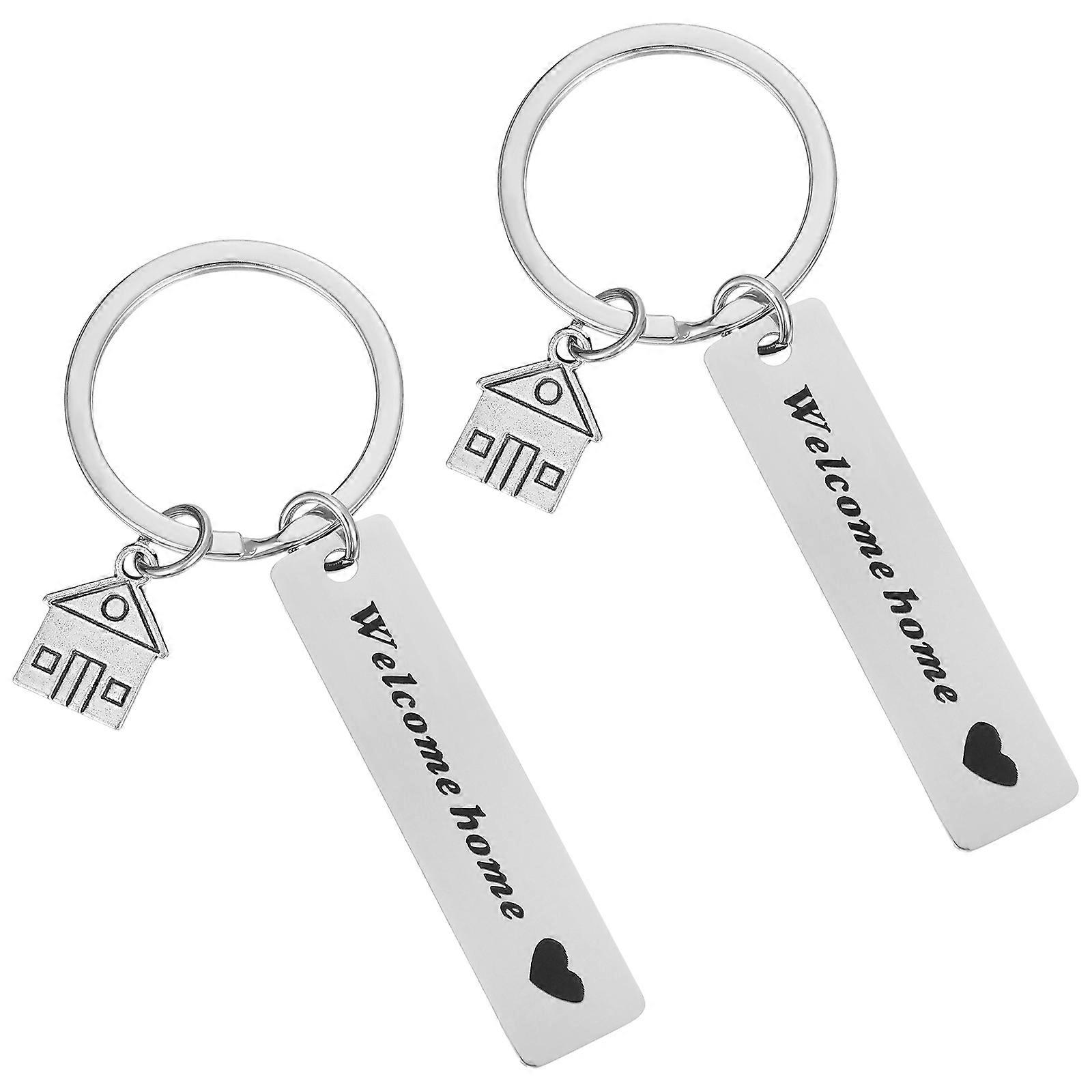 Creative House Keychain With Dual Charm Design Perfect For Housewarming Parties And Moving Into A New House In Silver Stainless Steel 2 Pcs