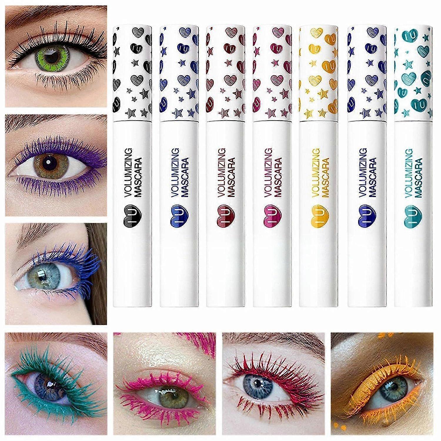 Vibrant Colored MascaraMAEPEOR Colorful Mascara Set make you more brighter and saturated with 7 pcs vivid colors: Dark Black, Nice Purple, Marine Blue, Mint green, Sauce Purplr, Vivid Red and Bright Yellow.Fuller & Voluminous MascaraIt's an amazing Magical Mascara Set. Soft brush just like a magician hands, making your eyelash up to 2X natural length. They usually hold the curl so much better and you don't worry about your very short lashes. And then you have a shinning big eyes, looking fuller and thicker.Longlasting Waterproof & SmudgeproofUsing an unique formula, the mascara is stronger Waterproof and Smudgeproof. You can definitely wear them all day and do not worry about messy and come off. What's more, it doesn't clump up and flake into your eyes while you wear contacts. (Note: take a while to dry after using.)Easily Apply & RemoveThis Washable Mascara goes on easy with an applicator and stays on, glossy finish. If like the dark effect, you could put on more coats. And it's pretty easy to remove with a eye makeup remover. No giving raccoon eyes.Perfect Eye Makeup GiftIt's a hypoalergenic vegan and cruelty free eye makeup. It will be an ideal for girls or ladies on Birthday Party, Cosmetic Show, Live Show, Prom Night, Dance Party, Wedding Makeup. (BTW, we do not test on animal because animals are our best friends.)