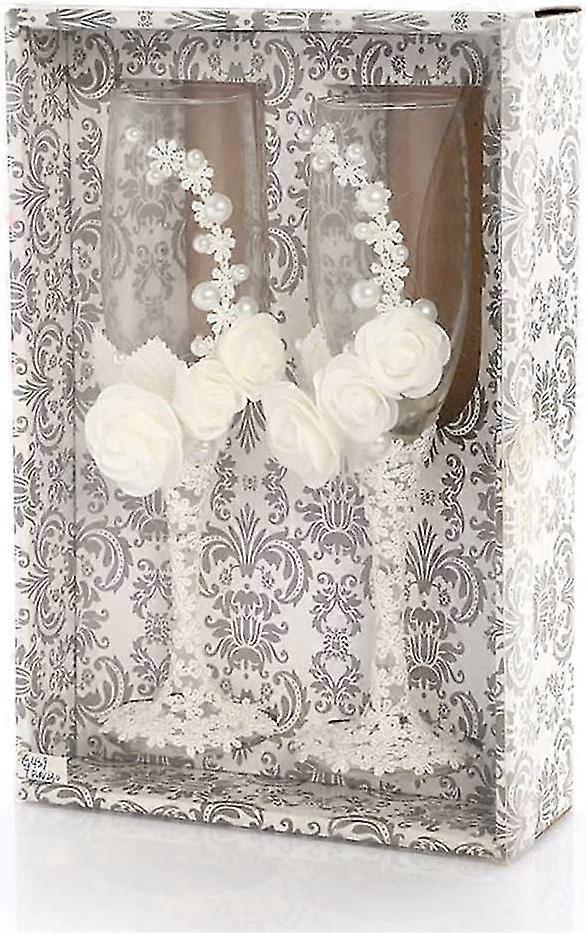 Well-Made This handmade, well-made, transparent goblet with white lace Champaign Flute Glass can add elegance to your wedding and give you a different feeling